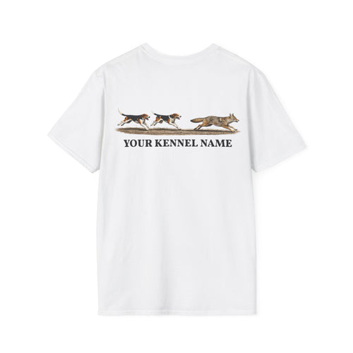 Hounds Chasing Coyote on Dirt Road - Custom Kennel T-Shirts